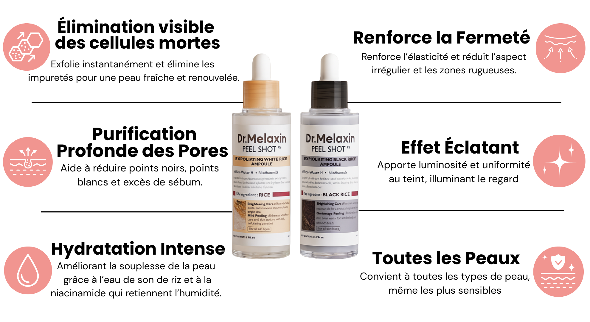 Le sérum au riz blanc est parfait pour une utilisation quotidienne, et le riz noir procure un nettoyage en profondeur. Je l’utilise 2 fois par semaine et ma peau paraît tellement fraîche."